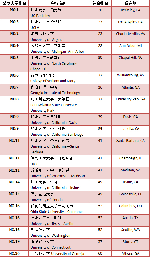 下面,燕定美中小编就为大家来盘点一下美国排名前20 的公立研究型大学:
