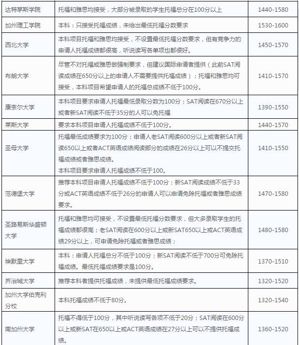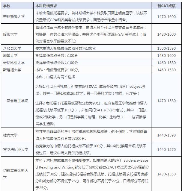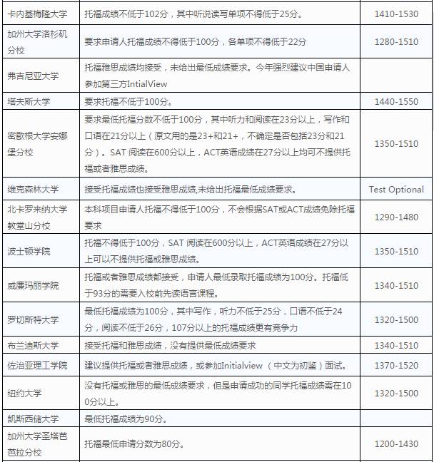 收藏!2018美国本科Top100大学托福/SAT录取要求!