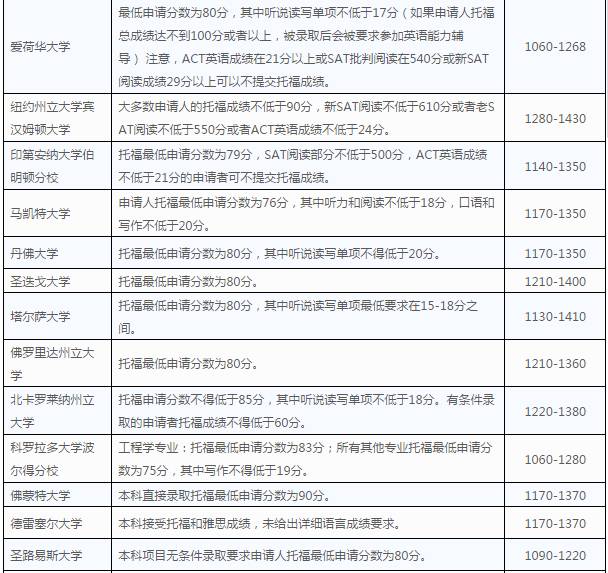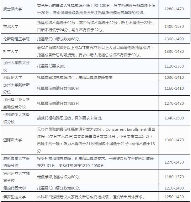 美国各高校公布的2018年秋季入学的最低语言成绩要求,速速收藏啦~~~