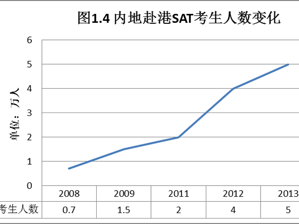 据美国《华尔街日报》的估计,2013年中国内地高中生赴港参加SAT考试的人数达到5万人次,而交通便利、设施齐全的香港亚洲国际博览馆每年10月份接待的SAT大陆考生人数就达到了1万多人,博览馆也因之被考生们戏称为“万人坑”。