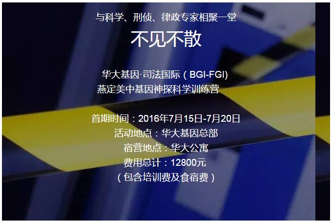 华大基因•司法国际(BGI-FGI)-燕定美中基因神探科学训练营