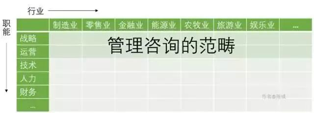 这个说多了都是泪,我倒现在都不能给我奶奶解释明白我的职业为啥能挣钱。至今最接近成功的一次,是我跟奶奶打的比方:是人就会生病,生了病就要去找医生,有人没即使没病还想增加营养。医生有全科医生和专科医生、内科医生和外科医生,有人专管脑神经,有人专管小孩子。咨询顾问就像是医生,只不过不是医人而是医企业,通过一系列的有效手法,告诉你怎么整改加强。要仔细论起来,咨询业从上世纪20年代发展到现在,有的公司专注行业(像儿科医生治小朋友的所有病症一样),有的公司专注职能(像脑科医生可以治所有人的脑袋)。从下表可以看出,除了像剧里比安提、晨星这样的管理咨询,还有各种各样的技术咨询、人力咨询、和财务咨询等等。